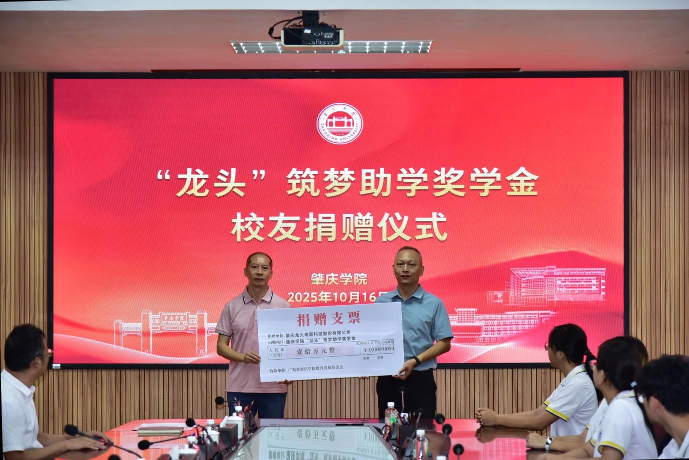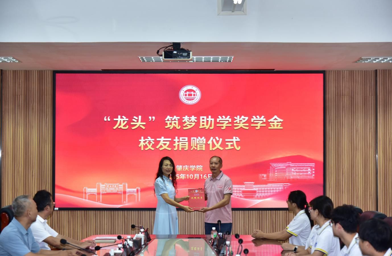 10月16日,我校举行“龙头”筑梦助学奖学金校友捐赠仪式。1993届校友、肇庆龙头电器科技股份有限公司董事长黎俊炫自今年起每年向母校捐赠10万元、连续捐赠5年,用于电子与电气工程学院贫困学子的助学奖学。