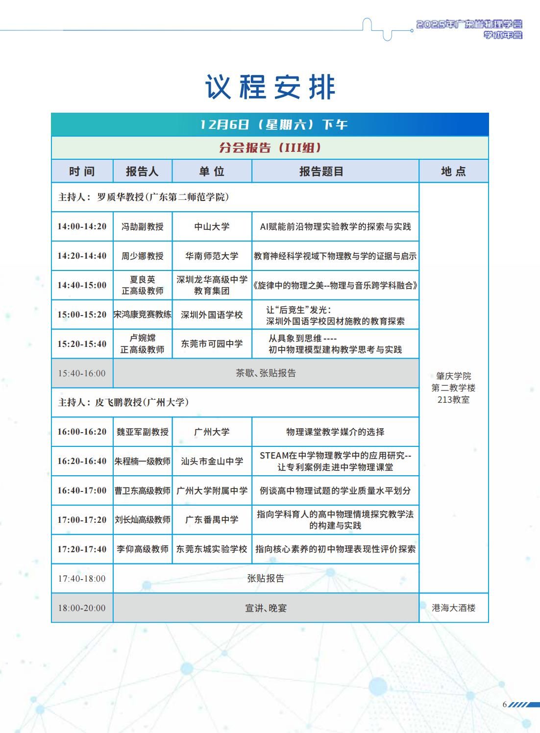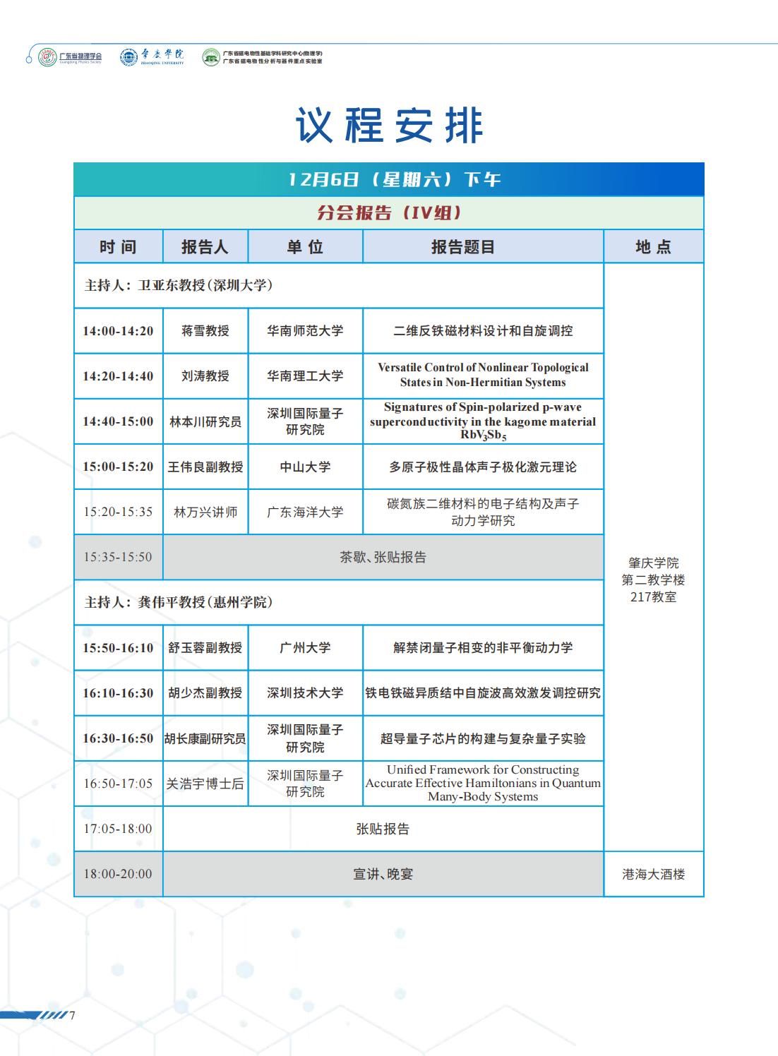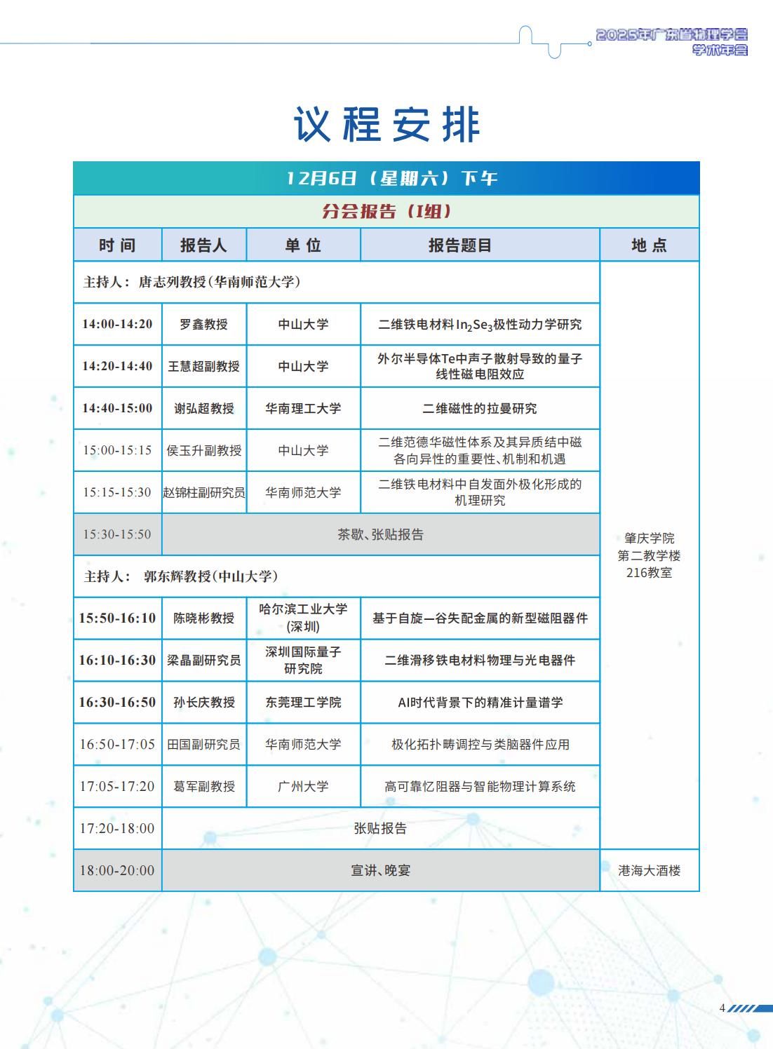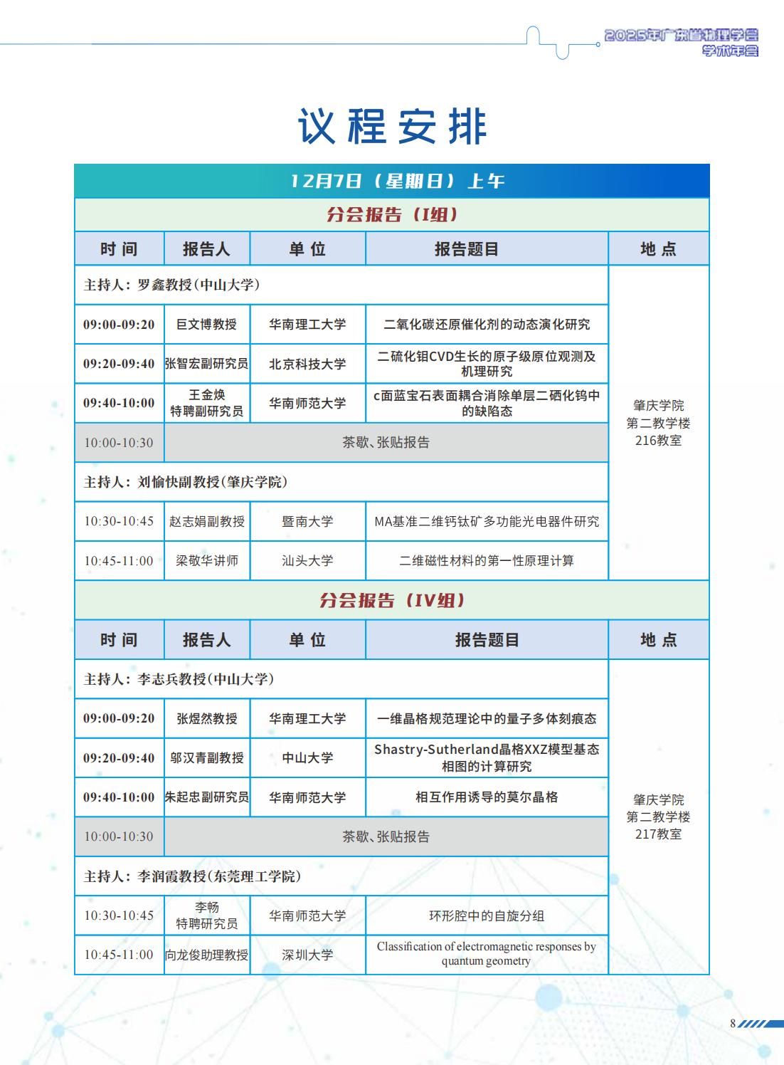 2025年广东省物理学会学术年会日程安排(5-7日),欢迎参加聆听!