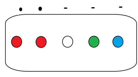 例:当前识别到的二维码为1(红球),识别图为”红-红-空-绿-蓝”,{..━ ━ ━},所以结果为”2“。