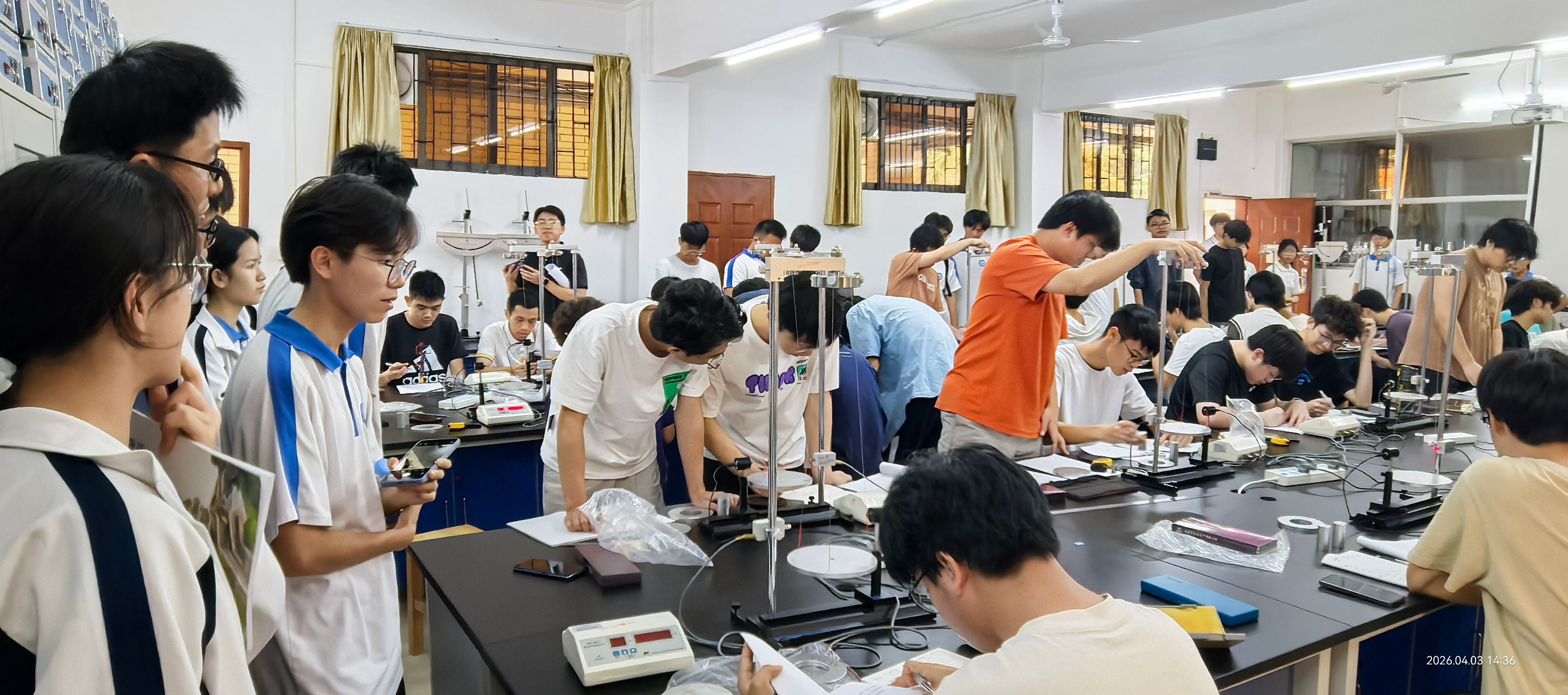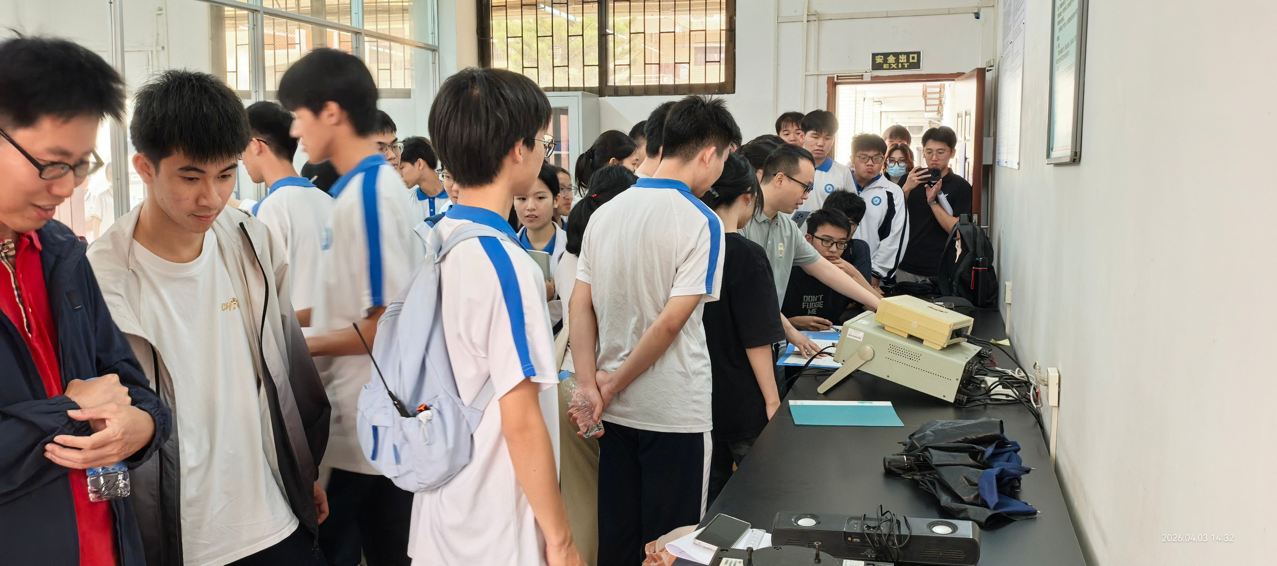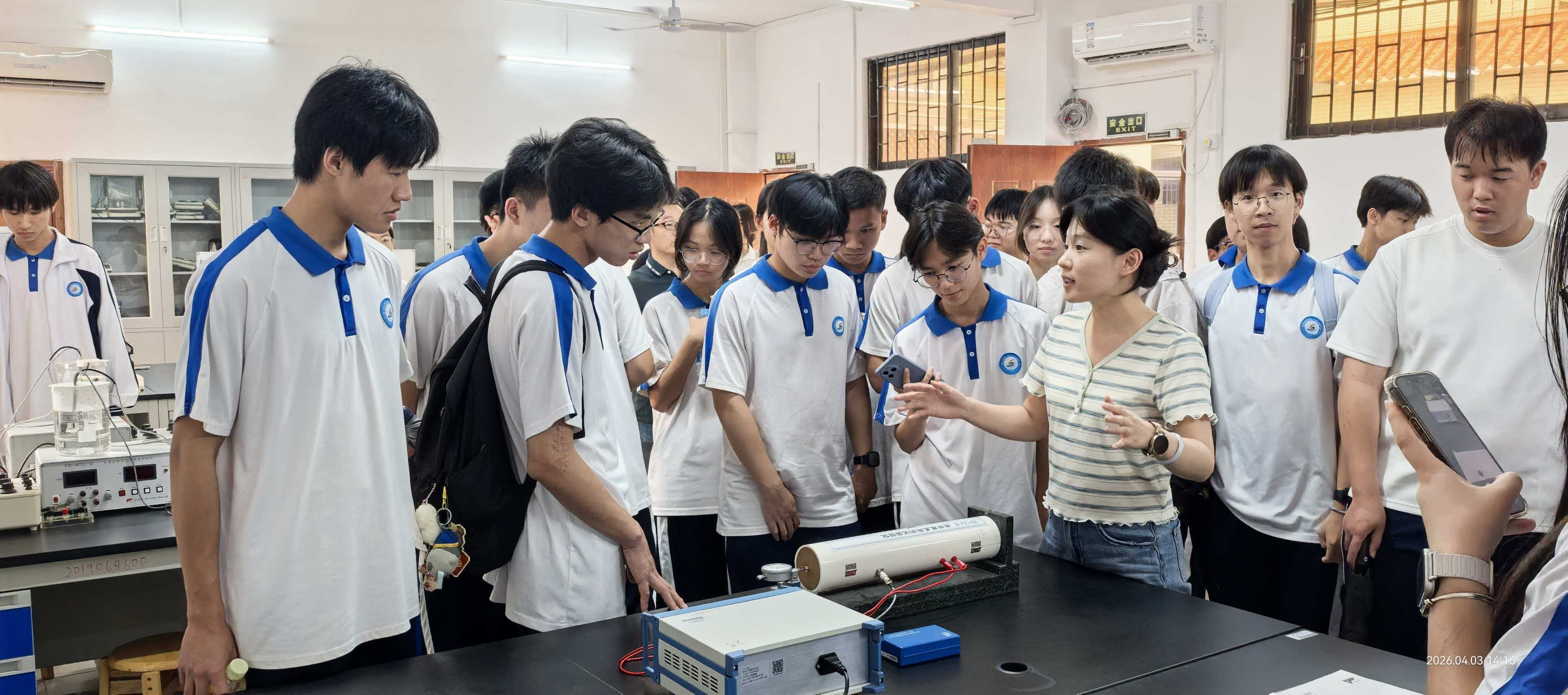 4月3日,作为肇庆学院广利实验中学首届科技节的一部分,高三选修物化生的同学们在临考前,前往我院热力学实验室、近代物理实验室、大学物理等实验室参观。我院认真组织,安排了相关课程的科任老师介绍了实验室情况,并安排了志愿者演示和指导学生进行了部分实验。在大家的努力下,这次社会服务活动得以完满完成,相信能进一步增长高三学子对大学生活的信心和向往,为他们的成长助力。